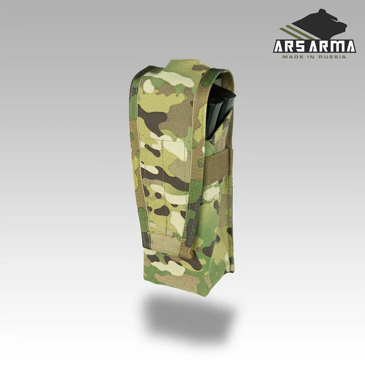 The pouch design allows for easy insertion or removal of a magazine with one hand. The pouch features a rigid outer wall and an internal divid...